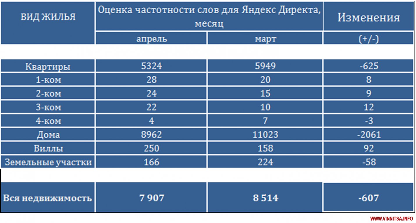 - спрос на недвижимость уменьшился на 607 пунктов, или 7,13% в целом;