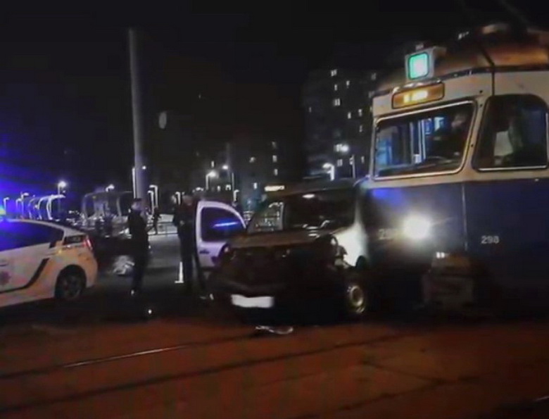 Камери відеонагляду зафіксували ДТП, яка трапилася на перехресті проспекту Космонавтів та вулиці Келецька. 4 квітня, ввечері, там зіткнулися трамвай і автомобіль.