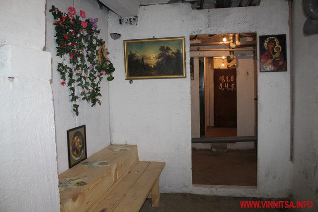 «Після того, як у підвалі замінили всі водопостачальні труби та стоки, старший будинку попросив у ЖЕКу-15, до якого відноситься приміщення, побілити стіни підвалу та зробити з дошок лавочку. Потім принесли з дому картини, квіти штучні, ікону, про яку розповів. У планах на майбутнє, створити в підвалі фотогалерею. Є знайомий фотограф, який займається пейзажами Вінниччини», - продовжує Скрипченков.