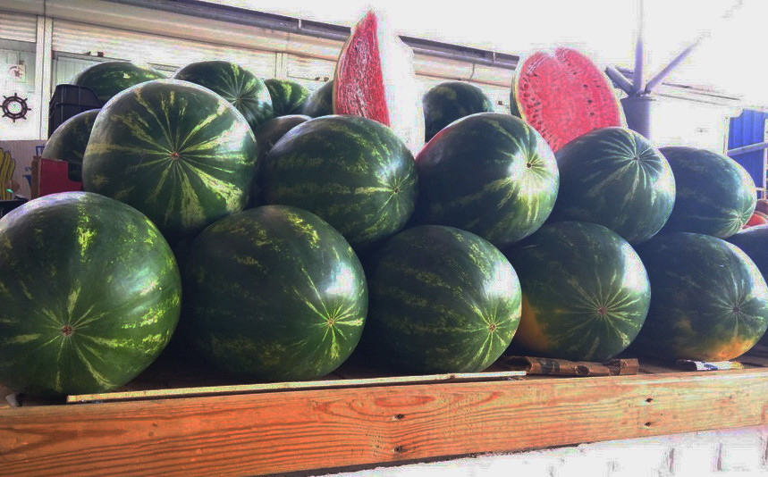 Навпроти по 50 гривень за кілограм кавуни. Усі великі, кому забагато, продають четвертинками.