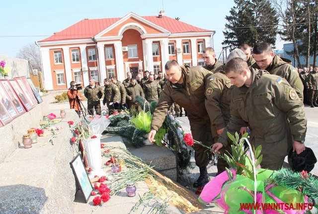 Для особового складу військової частини 3028 перша річниця з часу створення Національної гвардії - свято зі скорботою в душі і сльозами на очах: семеро їхніх побратимів поклали власне життя у боротьбі за державність та незалежність України. Тож учасники зібрання вшанували пам'ять загиблих товаришів хвилиною мовчання, поіменно згадавши кожного з них.