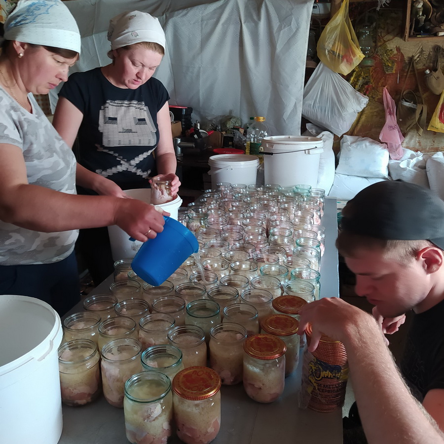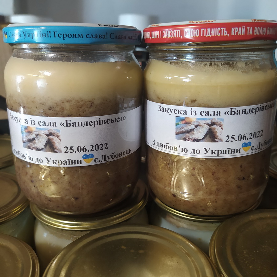З початку березня родина Горовенків поруч із іншими волонтерами виготовили 9000 банок тушонки, їй навіть дали особливу патріотичну назву: «Закуска бандерівська. З любов’ю до України».
