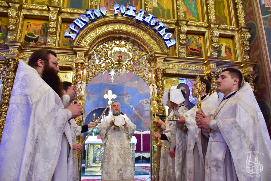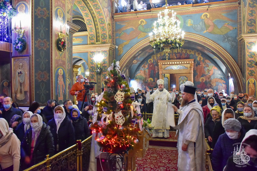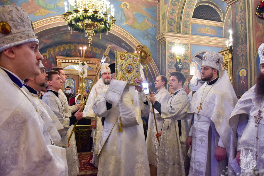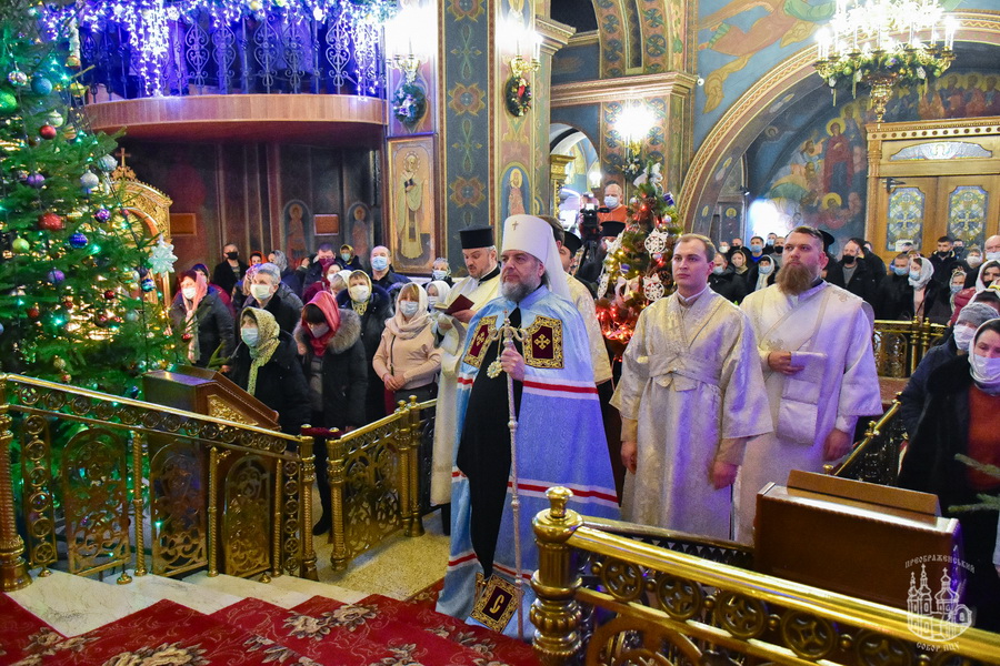 Після євангельського читання Різдвяне послання Предстоятеля Православної Церкви України Блаженнійшого Митрополита Епіфанія, зачитав ключар кафедрального собору протоієрей Віталій Голоскевич. А по завершенню Літургії, Владика Симеон та священники звершили чин славлення перед іконою Різдва.