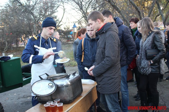 На гостей дійства очікувало багато пісень, стрільба з лука, майстер-класи по виготовленню браслетів. А ще працівники ДСНС приготували для усіх присутніх понад 200 порцій запашної каші з тушонкою та чай, а біля польової кухні був зведений великий намет, де всі охочі могли погрітися.