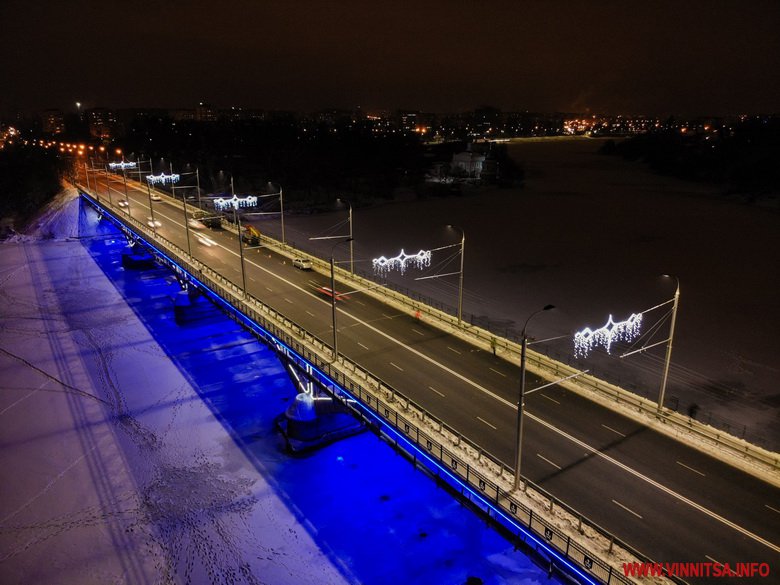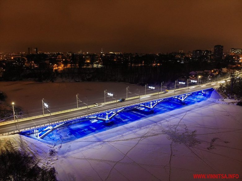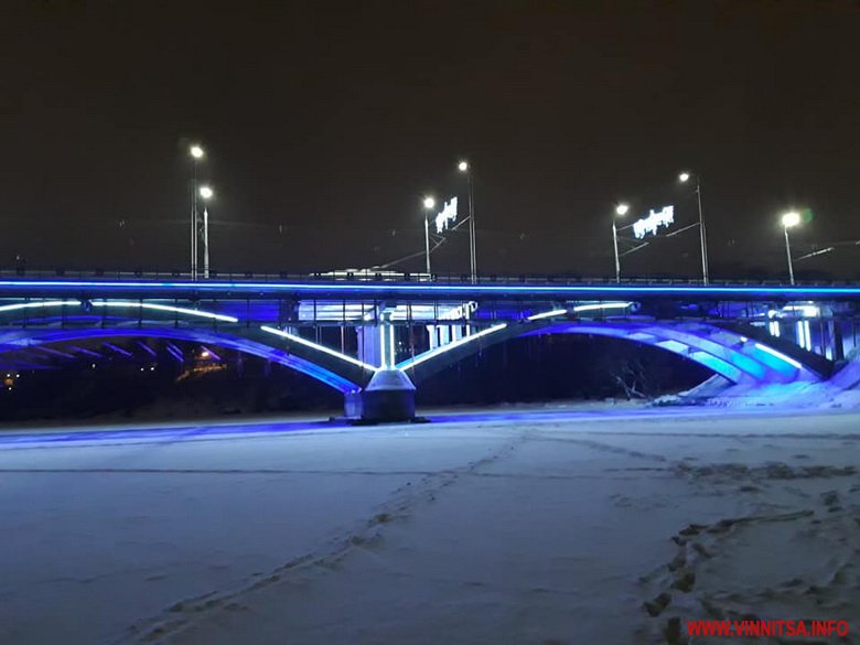У Вінниці підсвітили Київський міст. Ілюмінацію розмістили на опорах переправи. У темну пору доби міст виглядає казково.