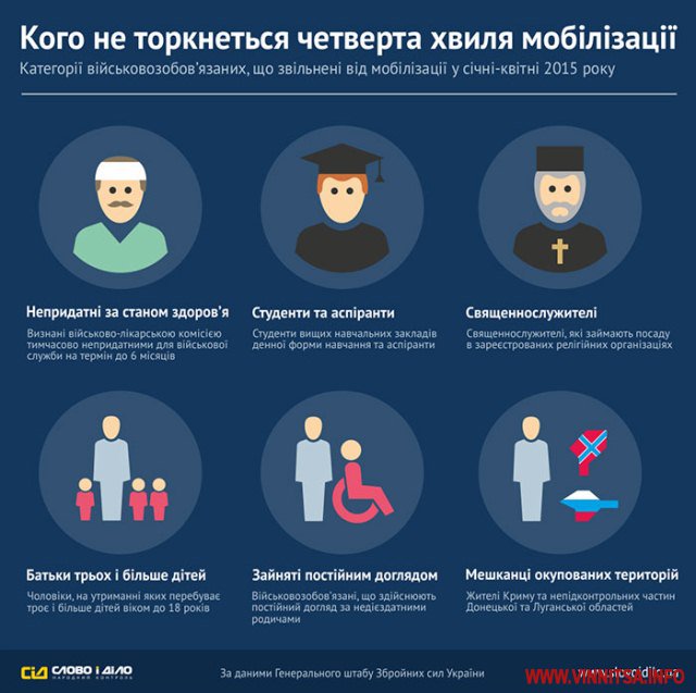 Але кого не торкнеться четверта хвиля мобілізації? Відповідь на це запитання показана в інфографіці.