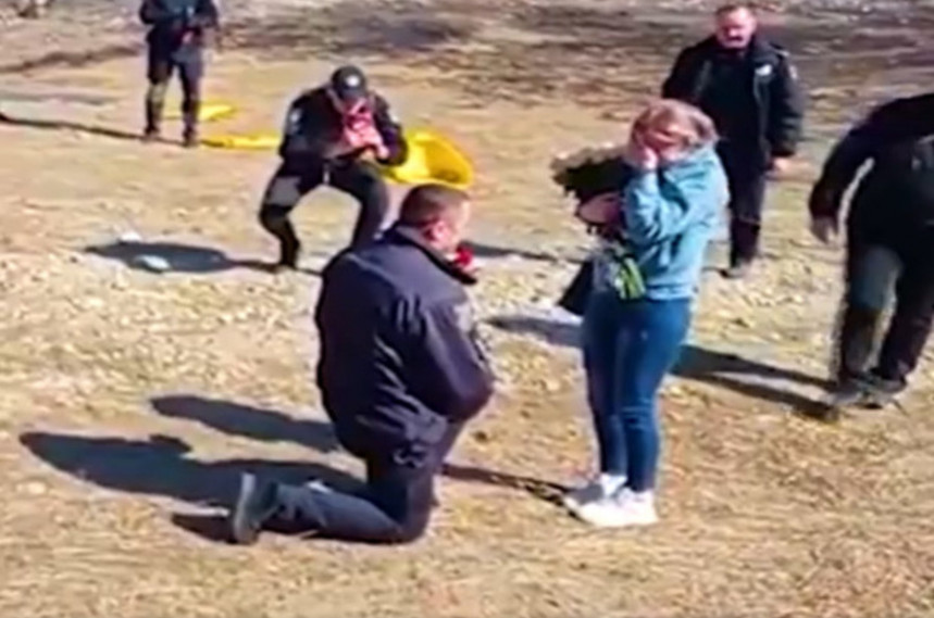 На Вінниччині поліцейський зробив пропозицію своїй дівчині і й одягнув каблучку на палець нареченій посеред полігону.