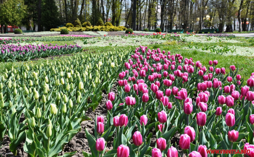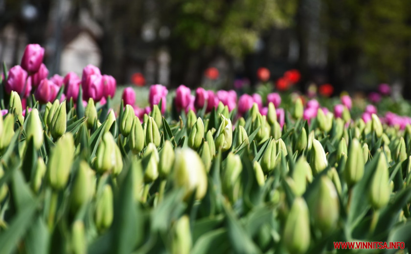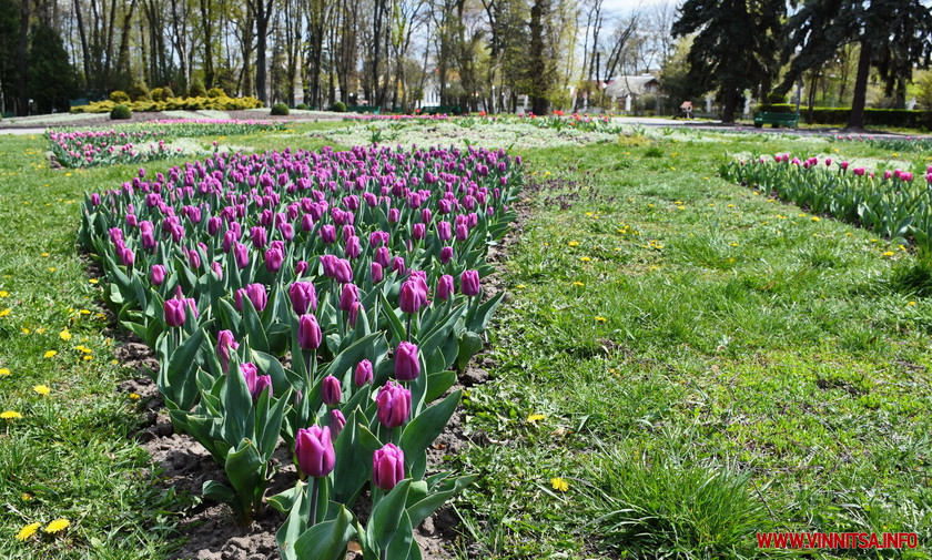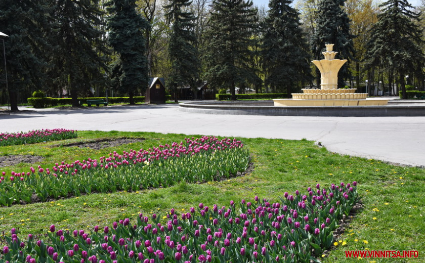У Центральному парку Вінниці зацвіли перші тюльпани із 40 тисяч саджанців. Їх до Вінниці завезли з Нідерландів.
