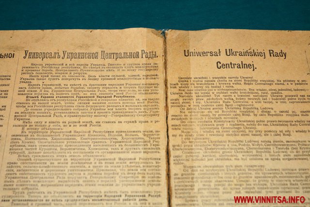 5 грудня у Державному архіві Вінницької області показали документи присвячені 100-річчю української революції 1917-1920 років. Це універсали Центральної ради та документи діяльності українського Уряду у Вінниці, яка принаймні тричі була столицею Директорії.