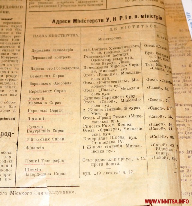 «Відомо, що в Директорії тоді були створені відділи, які виконували функції міністерств. Керівниками відділів часто призначалися вінничани. Так викладач Вінницького учительського інституту Юхим Щириця був призначений на посаду завідуючого відділом освіти. Наказ про його призначення підписав сам голова директорії УНР Володимир Винниченко, який теж тоді перебував у Вінниці», - розповів Вінниця.info головний спеціаліст відділу інформації обласного архіву Костянтин Завальнюк.