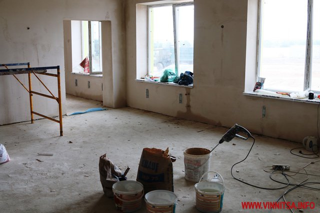 Будівля має два поверхи: там завершують шпаклювання стін у класах для занять, спальнях, їдальні, хореографічній залі, кімнатах для ігор та санвузлах.