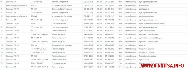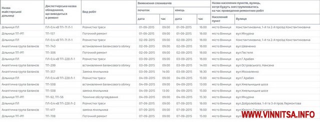 Графік відключень оприлюднено на сайті ПАТ «Вінницяобленерго».