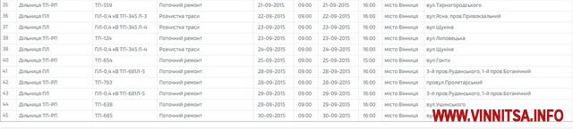 ПАТ «Вінницяобленерго» на вересень складено графік відключення електроенергії у Вінниці та області.