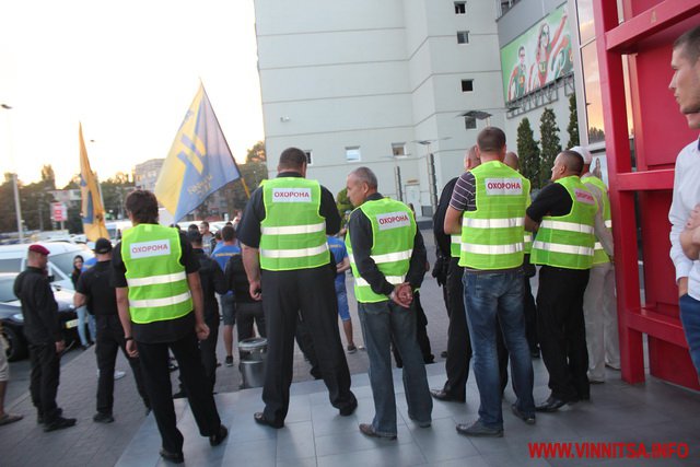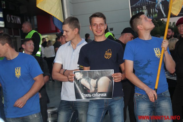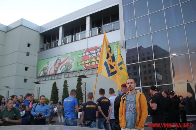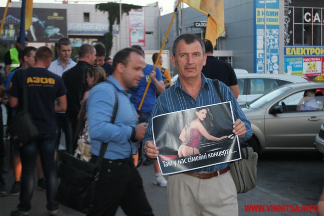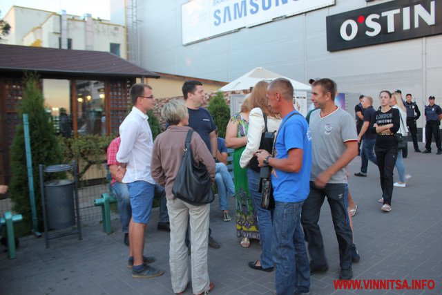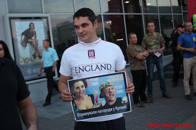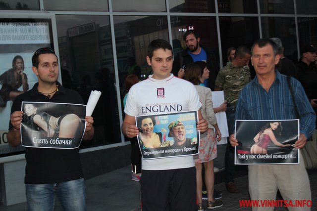 Якщо говорити про гучно заявлений напередодні в соцммережах пікет, то сьогодні з плакатами і прапорами до центрального входу «Мегамоллу» прийшло біля трьох десятків активістів. Це представники «Автомайдану» та «Азову». Натомість три тисячі глядачів придбали квитки, щоб відвідати концерт.