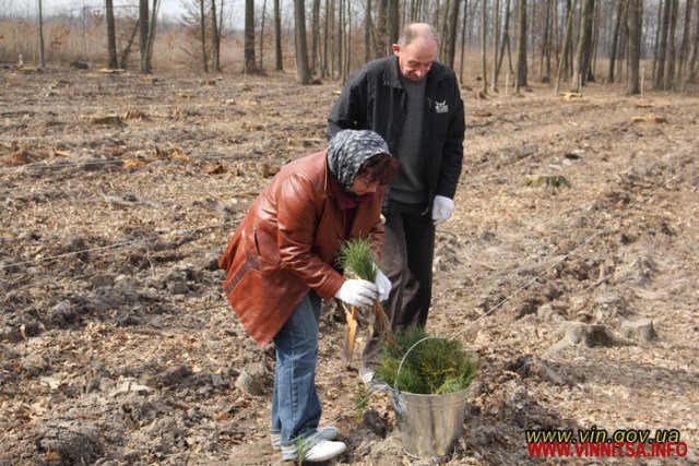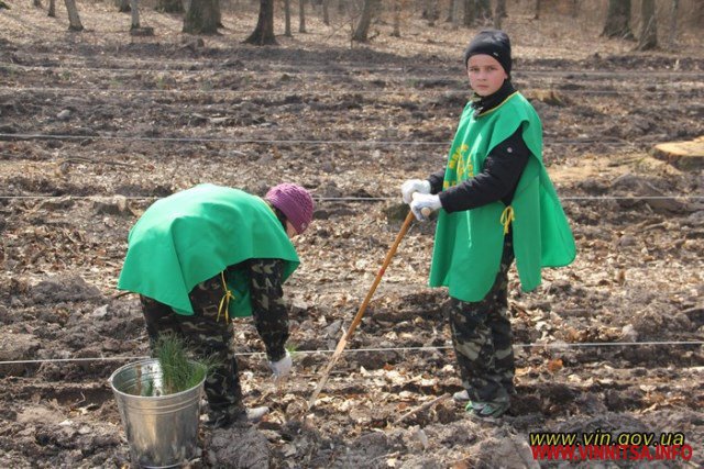 Саджанці сосни і дуба червоного колективи виконавчого та самоврядного органів влади Вінниччини висаджували на території Медвідського лісництва Вінницького району разом із членами шкільного лісництва.