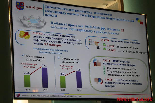 «Місцеві бюджети на протязі 2 останній років внаслідок надзвичайно успішної децентралізації зросли майже на 2,5 мільярди гривень. Це той фінансовий ресурс, який на сьогоднішній день формує загальний соціальний фон місцевих бюджетів.