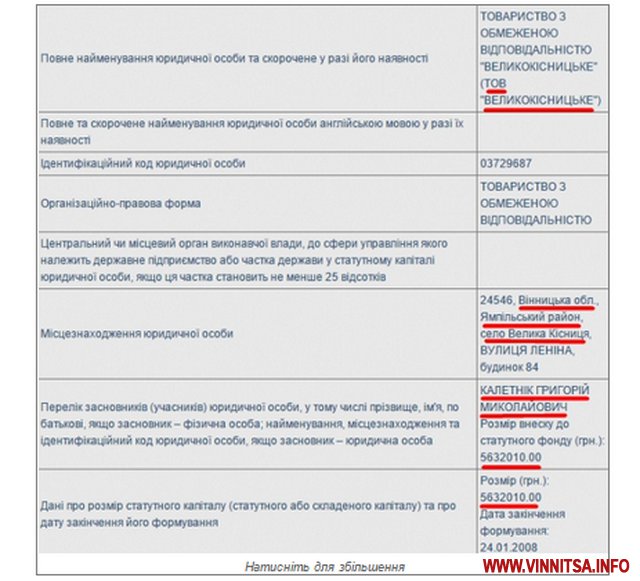 Єдиним власником ТОВ у державному реєстрі зазначений Григорій Калетнік з внеском до статутного капіталу 5 632 010 грн. Директором підприємства значиться депутат-"регіонал" Ямпільської районної ради Микола Шарко. За словами керівництва, ця компанія щороку приносить їм 8 млн грн.