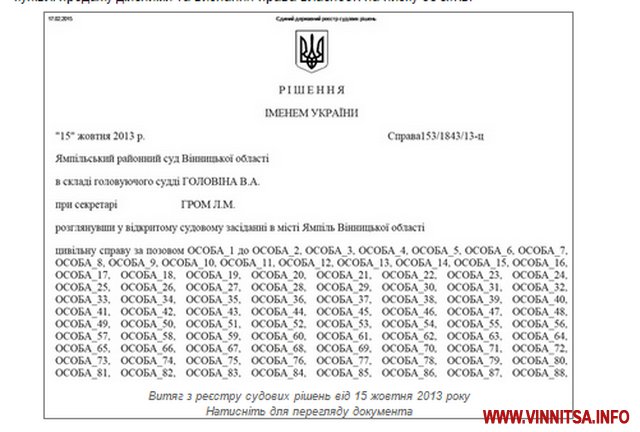 За місяць до Революції гідності Ямпільський районний суд Вінницької області задовольнив позов Григорія Калетніка до більш ніж 300 відповідачів.