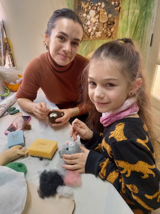 «Моя хороша знайома оселила у себе біженців із Харкова. Привела до мене. Лана та Олена – мати й дочка. Після того, як у рідне місто почали обстрілювати, дівчинка стала мовчазною. Й забулась, як це посміхатися.... Запропонувала їй багато різних варіантів, але вона захотіла валяти кота, хоча ніколи цього не робила. Вийшов котик напрочуд добре. Лана не випускала його із рук. А під час чаювання, час від часу підправляла мордочку. А до кінця заняття вже посміхалася», - розповіла Вінниця.info пані Наталія.
