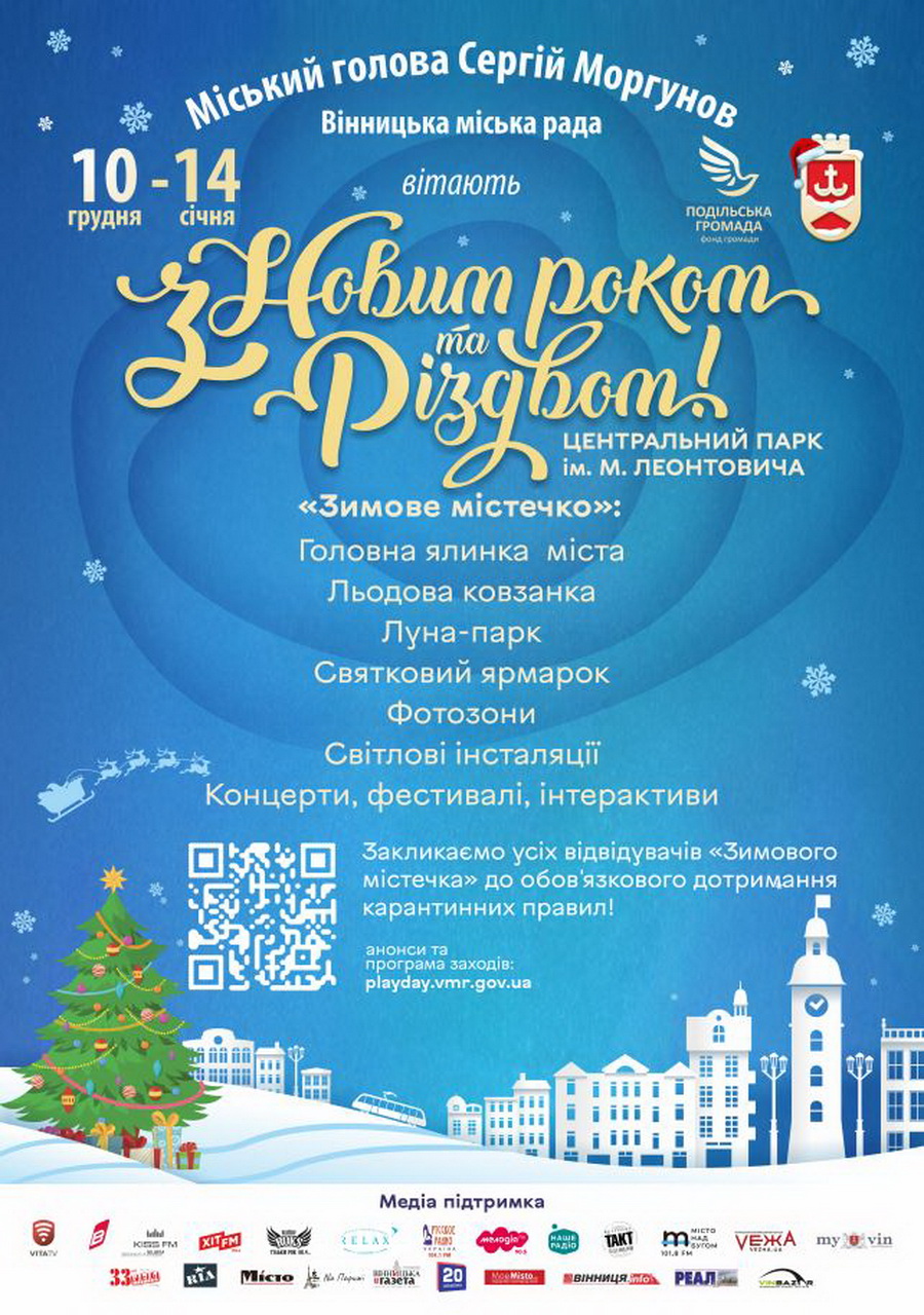 У Вінниці з 10 грудня запрацює «Зимове містечко». У Центральному парку цього року буде не тільки новорічна ялинка, але й ковзанка та ярмарок, де можна буде придбати подарунки, прикраси та сувеніри, також працюватиме луна-парк. Працюватиме містечко до 23 січня.