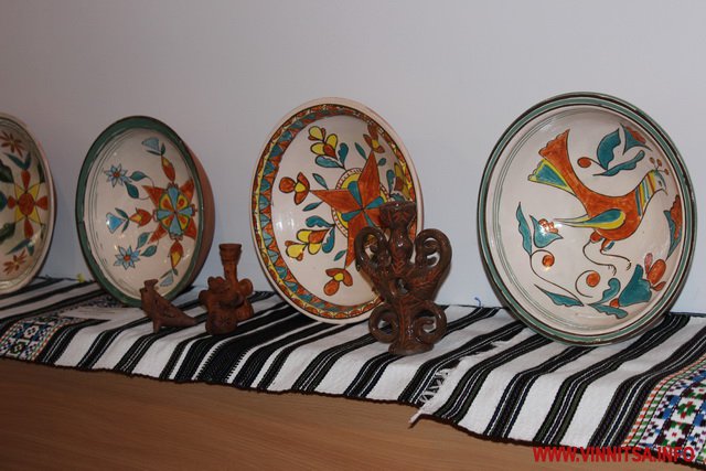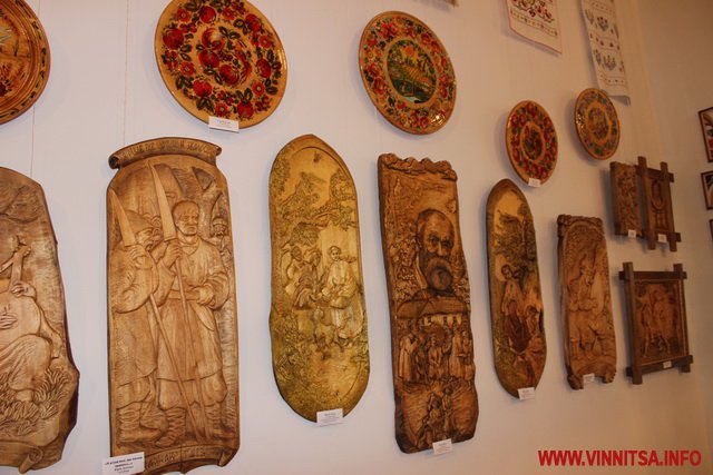 На виставці представлені унікальні витвори мистецтва творців з Вінниччини серед яких є картини вирізані з дерева, ляльки-мотанки, український одяг та вишиті рушники, петриківський розпис, глиняний посуд з національним українським орнаментом та інше.