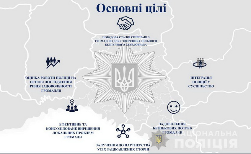 Мета проекту – забезпечити кожну територіальну громаду офіцером поліції, орієнтованим на розв’язання безпекових проблем своєї територіальної громади. Він буде доступний для населення, тому що постійно знаходиться поруч з людьми на території обслуговування.