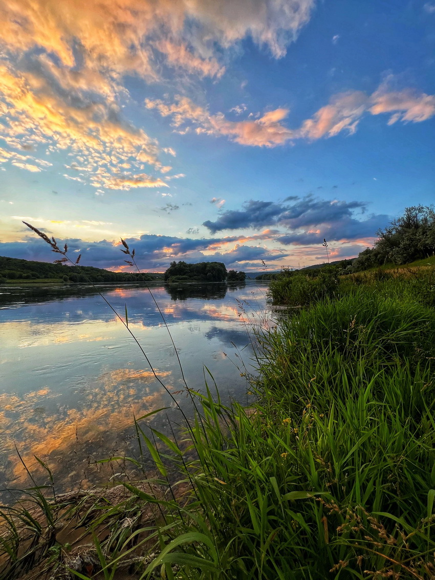 Захід сонця, що грає багряними барвами і віддзеркалення неба у водах Дністра. На сторінці в «Фейсбук» жителі села Оксанівка опублікували світлини з місцевими краєвидами.
