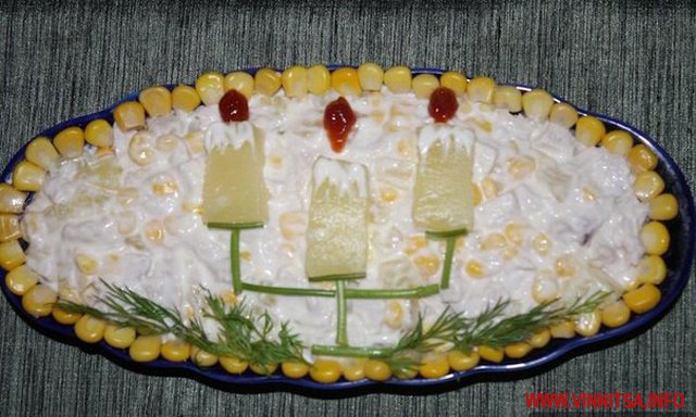 2 слой:  консервированная кукуруза. Смазать майонезом.