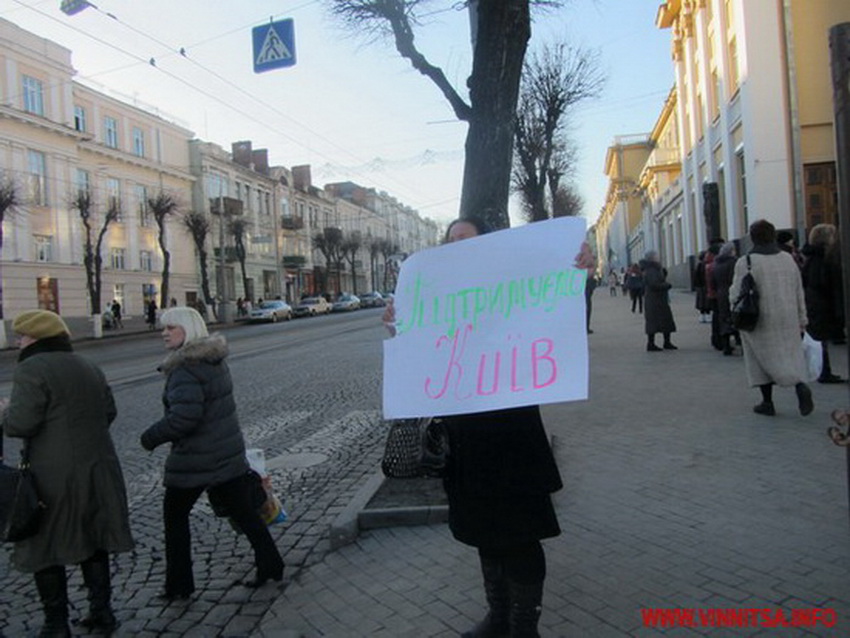 Вінниця. Активісти та небайдужі громадяни вийшли з мітингом до Вінницької облдержадміністрації. Люди зі сльозами на очах закликали перехожих не бути байдужими до подій, що стались в Києві, під час яких були загиблі і травмовані.