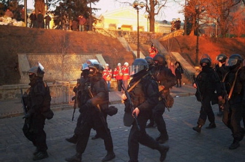 Київ. 20.00. Силовики розпочали штурм Майдану Незалежності з боку Європейської площі та вулиці Інститутської. З боку Європейської площі ближче беркутівці та бійці внутрішніх військ вишукувались у бойовий стрій. Під'їхали три водомети, які поливали барикаду на Хрещатику та активістів. Вони почали ламати барикаду, не дивлячись на те, що на ній стояли люди. Силовики застосовують світло-шумові гранати. Загони штурмовиків пішли у бік барикад на Інститутській.