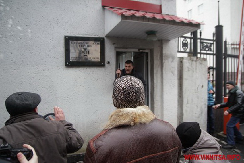 Вінниця. Перша і остання кров. О 12 годині до людей на площу Театральну вийшов голова Вінницької облдержадміністрації Іван Мовчан. Громада вимагала, щоб він написав заяву про відставку, той не погодився. Покинувши площу, губернатор сів в авто і почав тікати від мітингувальників в напрямку СБУ. На Грушевського. Там силовики здійснили постріли і одного з протестувальників поранили в ногу з вогнепальної зброї.