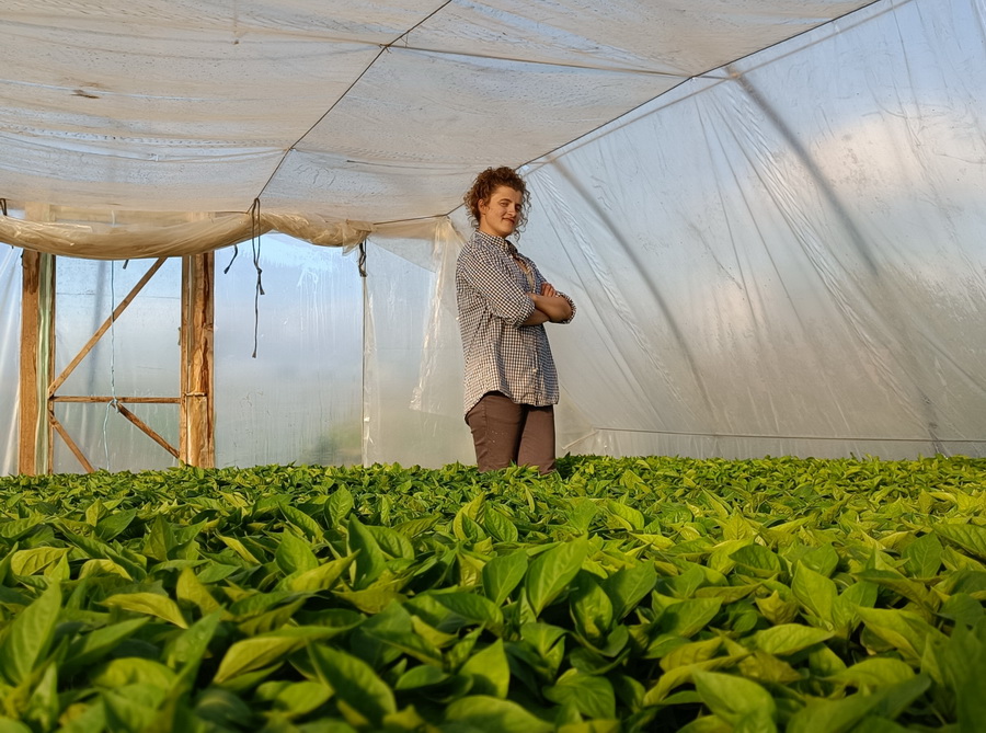 «Я за освітою я вчитель географії та біології, економіки та туризму, навчалась в Київській області. Навіть два роки пропрацювала за спеціальністю, але потім зрозуміла, що професія вчителя - це не моє. Звільнилась, та переїхала в село. Планувала тимчасово тут пожити, поки не знайду чим далі в житті займатись. Переїхала із власним хлопцем, це було чотири роки тому. Тоді я вирішила посіяти перець, вибрала інтенсивну технологію, побудувала теплицю. Висіяли перший урожай насіння, і на тому наші гроші закінчились.
