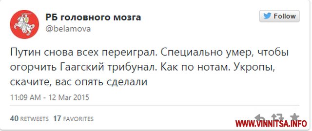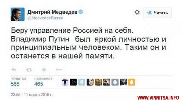 Масла у вогонь підлили повідомлення від імені Дмитра Медведєва, обліковий запис якого в «Твіттері» зламали і «запостили» повідомлення про смерть Путіна.