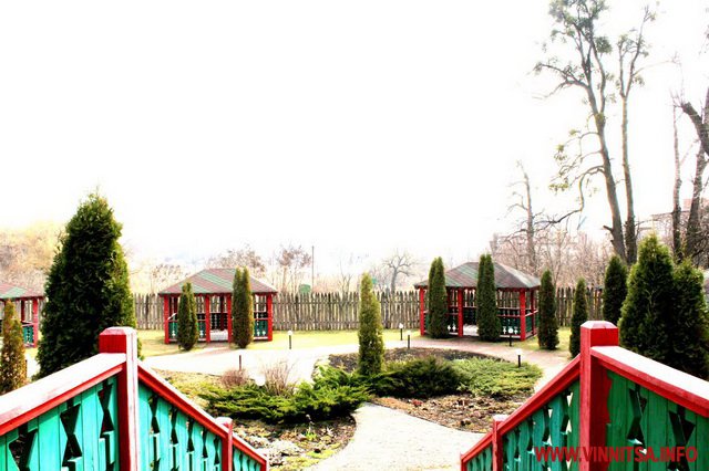 Окрім вишуканої дерев’яної тераси, виконаної в унікальній стилістиці усього закладу, на гостей чекають також затишні альтанки, що вдало розташувалися на доглянутому соковито-зеленому газоні. Прикрасою величезної озелененої території є ландшафтний дизайн, що робить перебування на подвір’ї ще приємнішим... Без сумніву, однією із переваг закладу, є дитячий майданчик, що знаходиться в полі зору батьків та дозволяє, без хвилювань за дозвілля своїх дітей, насолоджуватися смачною трапезою.