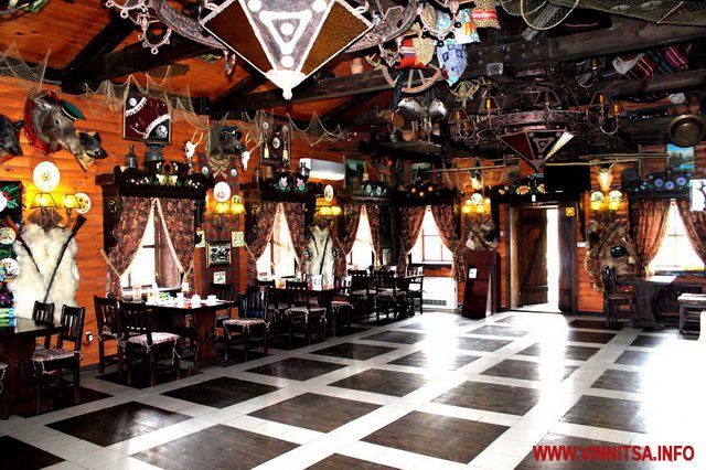 Інтер'єр ресторану витриманий в двох напрямках – мисливська тематика та етнічні мотиви українського села. Це створює неповторну атмосферу, адже тут стіни завішані мисливськими трофеями, рушницями, рибальськими сітями, різноманітними дідівськими атрибутами побуту, старовинним посудом, музичними інструментами та багатьма іншими речами, від яких просто неможливо відірвати захоплений погляд!