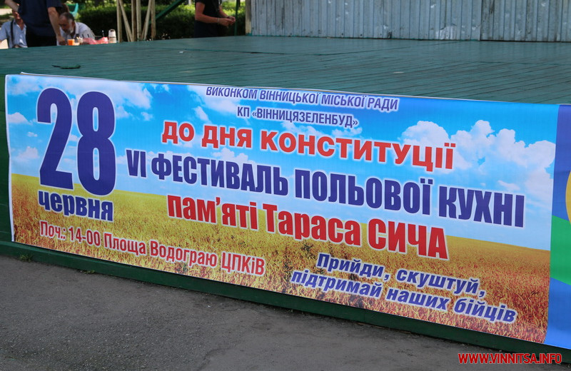 28 червня до Дня Конституції, у Вінниці відбудеться шостий фестиваль польової кухні пам’яті героя-земляка Тараса Сича. У центральному парку ім. Леонтовича на Площі Водограй буде влаштовано близько двадцяти «точок» для приготування страв на багатті та у польових умовах. Тих, хто зробить благодійний внесок – придбає «фестивальну тарілку», частуватимуть смаколиками.