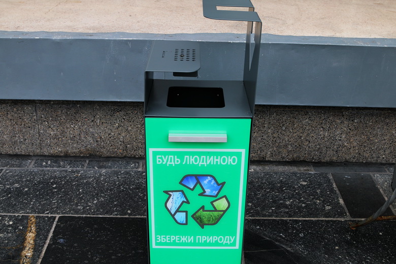 22 березня на вході до Вінницької міськради, встановили дві нових урни із надписом «Будь людиною – збережи природу».