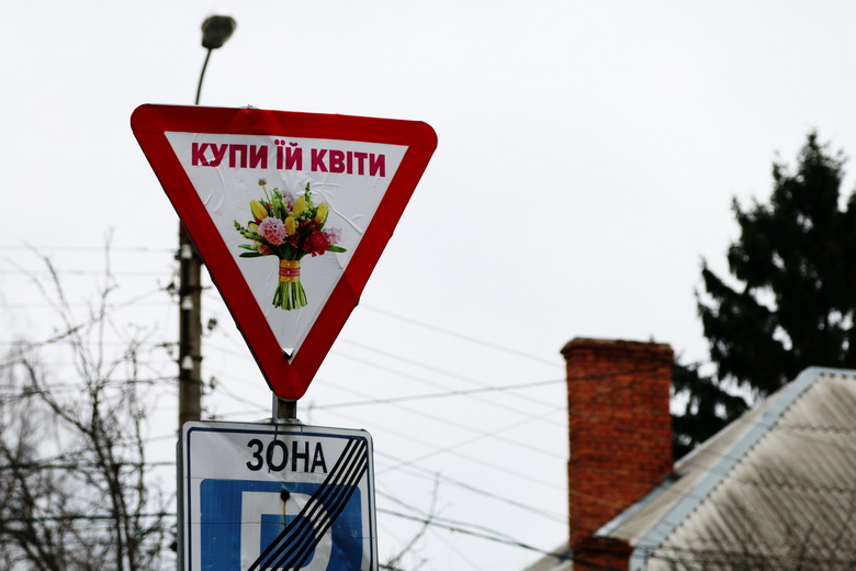 Також на початку березня у Вінниці з’явився незвичний дорожній знак «Купи їй квіти». Хто автор – невідомо. Можливо, автор цим знаком хотів ще раз нагадати чоловікам, бути уважнішими до жінок. Знак розташований на вулиці Артинова.