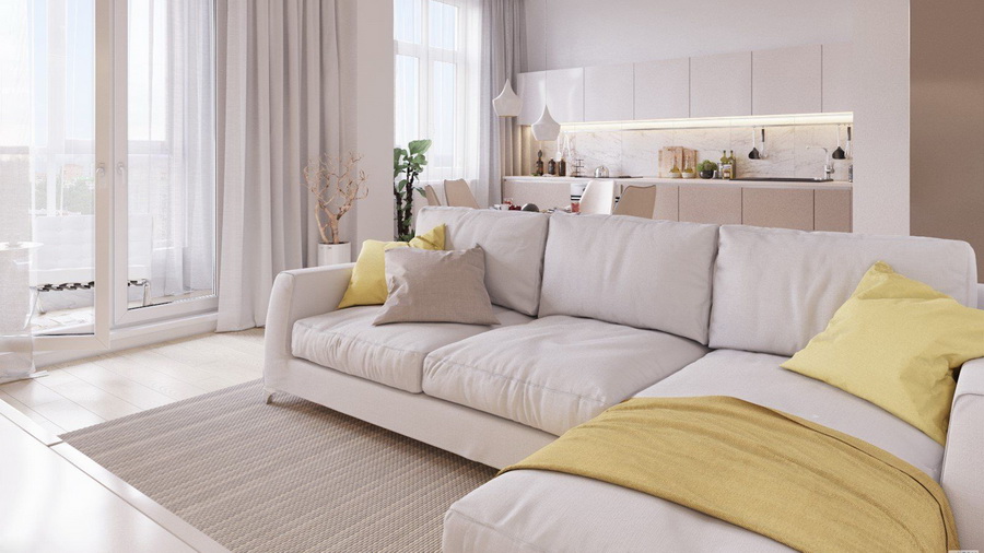 В першу чергу, рекомендуємо звернути увагу на меблі пастельних відтінків – це візуально розширить площу. Біла, або світло сіра вітальня не тільки допоможе організувати речі, а й додасть затишної атмосфери Вашій оселі.