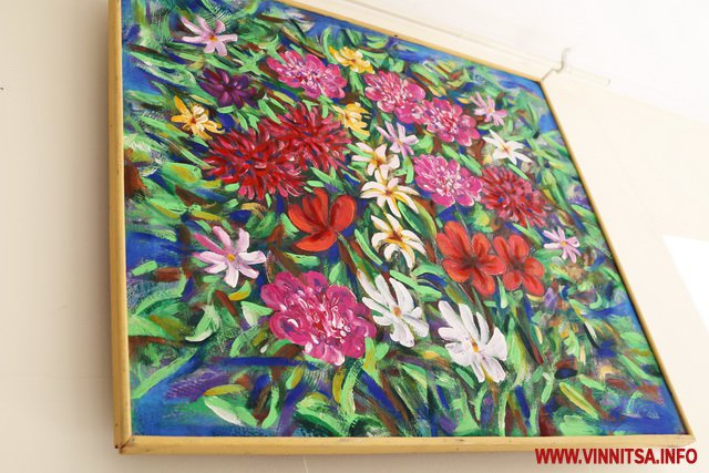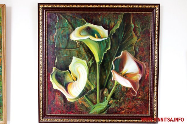 Привертають увагу портрети красунь та реалістичні квіти на полотнах.