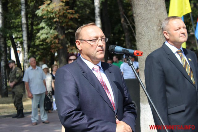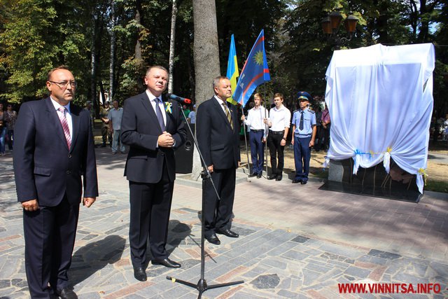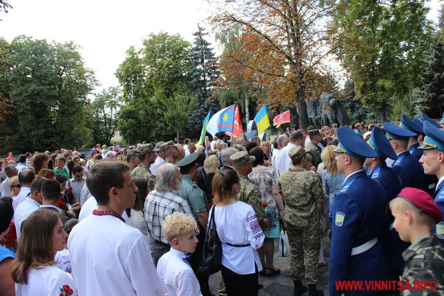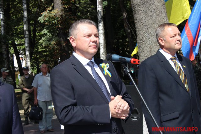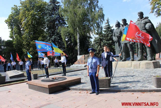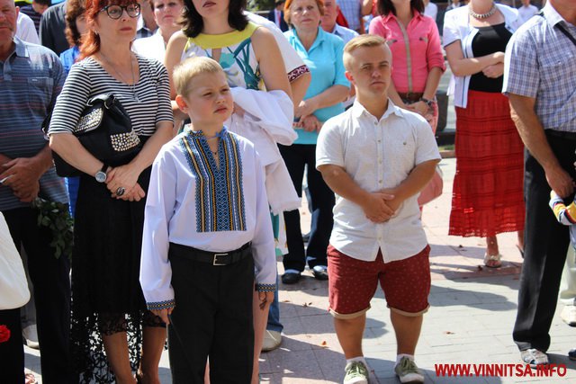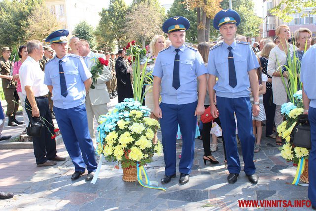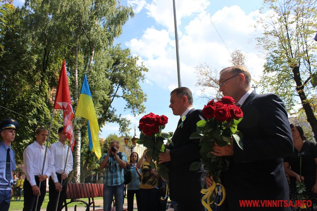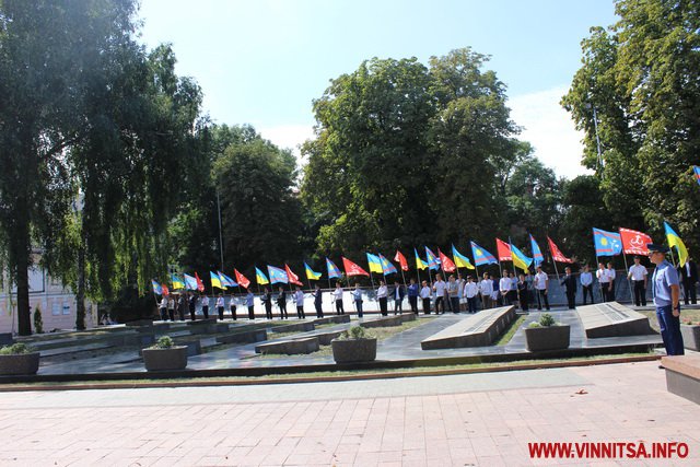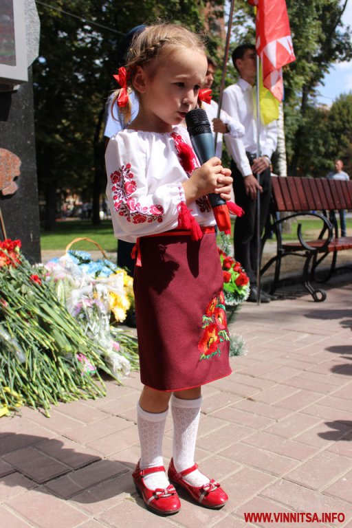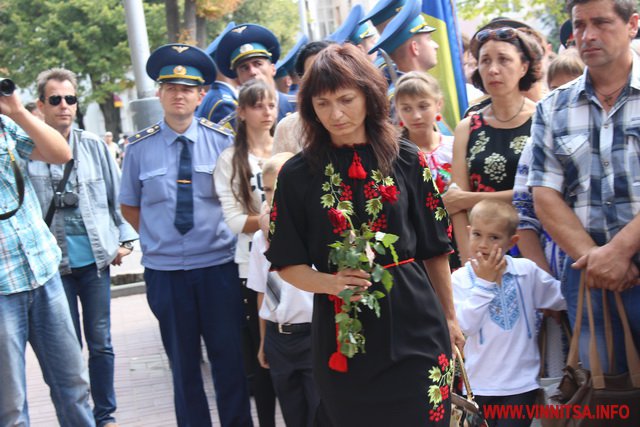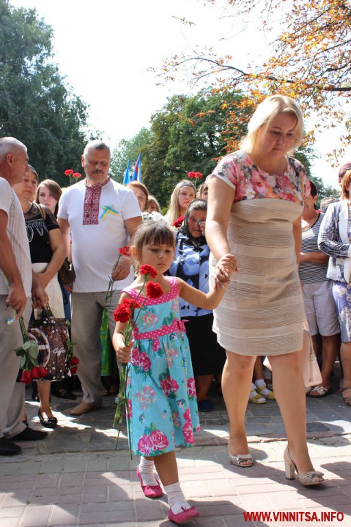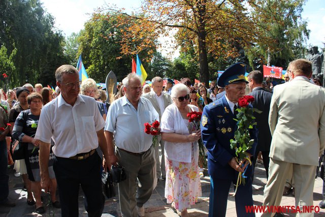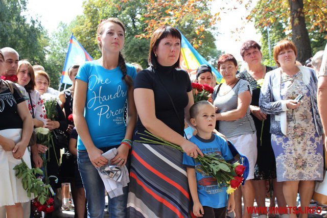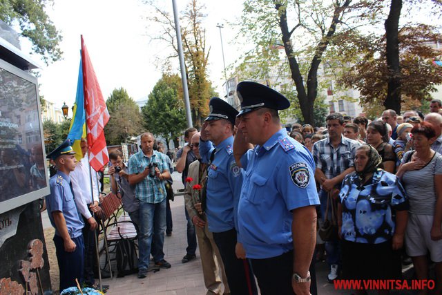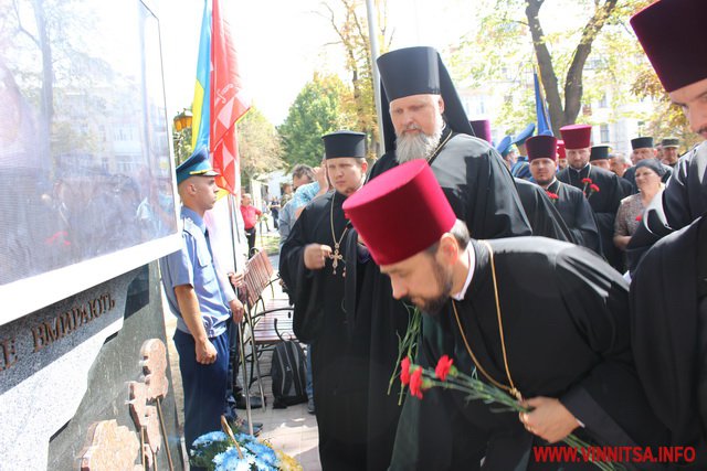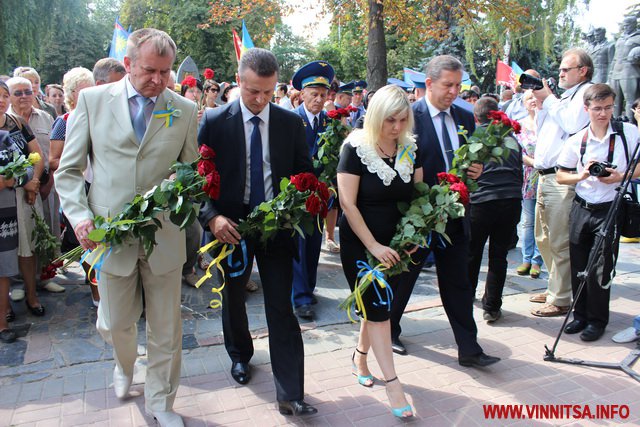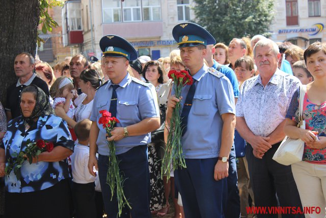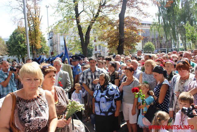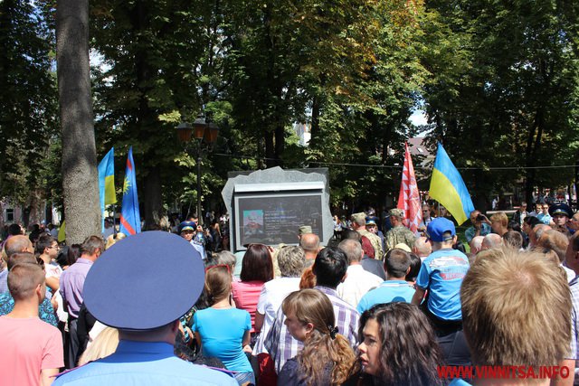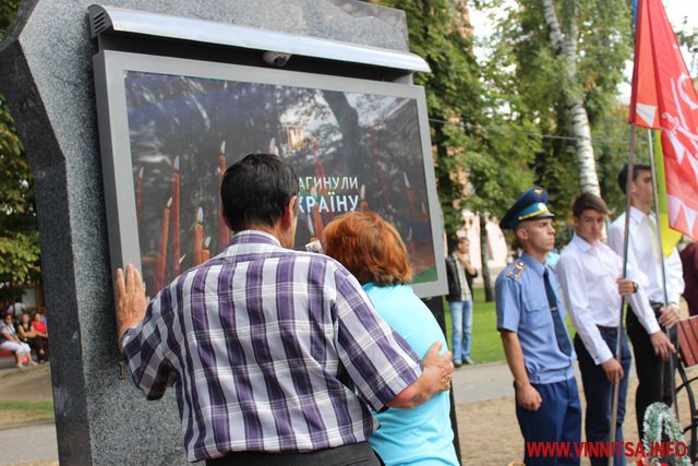 Розпочалося дійство о 12 годині з хвилини мовчання. Після чого до вінничан та родичів Героїв звернулося керівництво міста та області. Відкрили мультимедійну стелу пам’яті син загиблого воїна Віктора Кулібаба-Бухова – Андрій, та донька загиблого Героя Валентина Білошкурського – Анастасія.