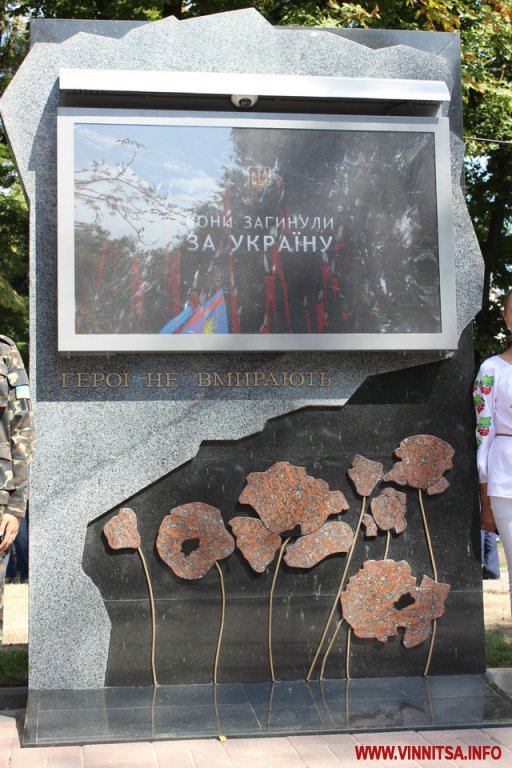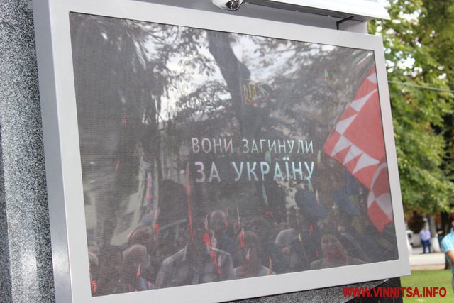 23 серпня у День Державного Прапора України на Європейській площі відбулося відкриття інтерактивної мультимедійної стели Пам’яті Героям Небесної Стоні та загиблим Героям АТО, які родом з Вінниці і Вінницької області.