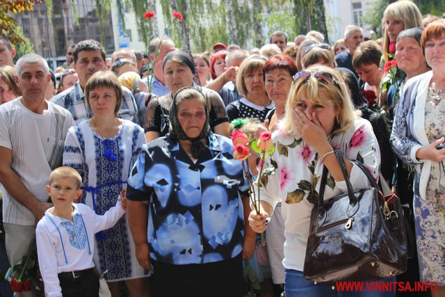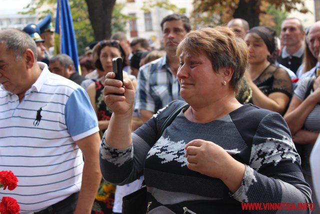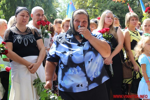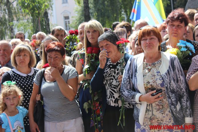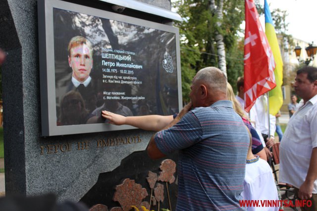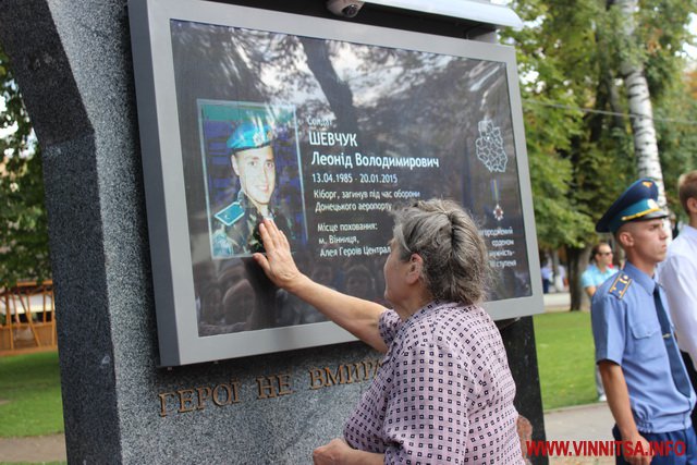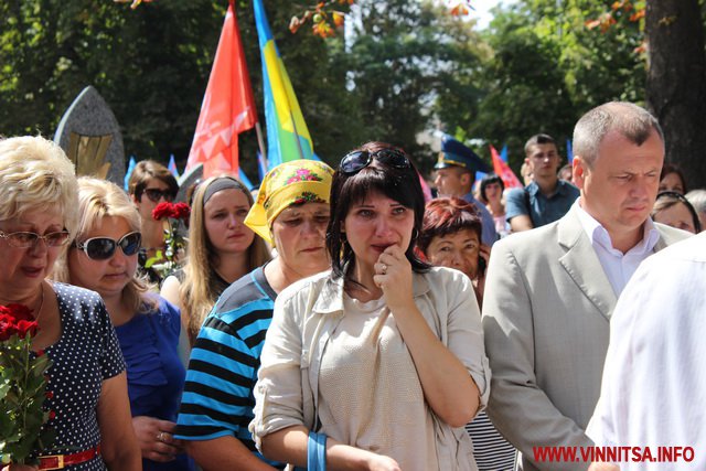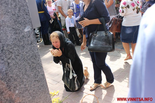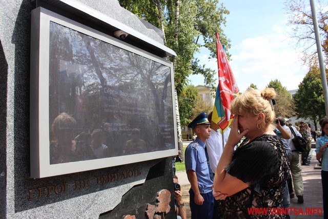 Після офіційного відкриття кожна сім’я загиблих вінничан зі сльозами на очах поклала квіти до підніжжя стели, саме тоді, коли їхнього Героя показували на мультимедійному екрані.