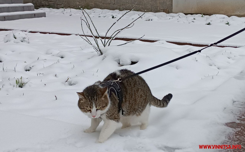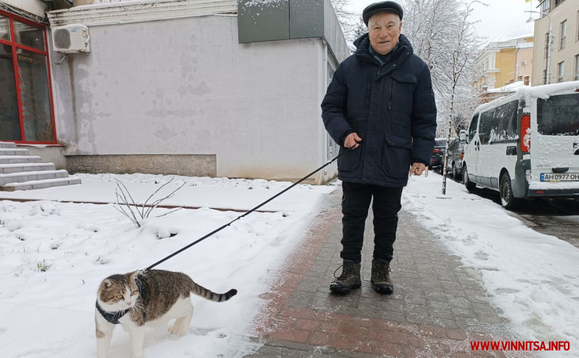 Тим часом вінничанин Дмитро Джола вигулює кота. Котик на прізвисько «Ластік» стрибає по снігу. Господар взяв його на поводок після того, як кота кілька раз крали, бо ластиться до всіх перехожих.
