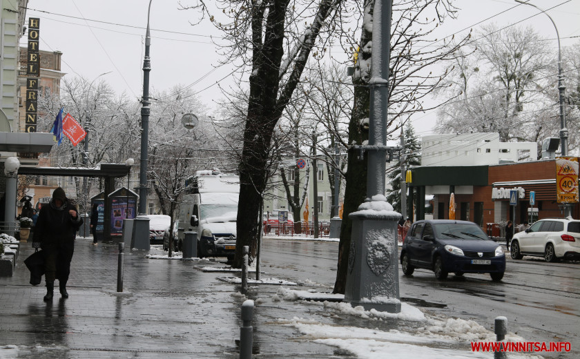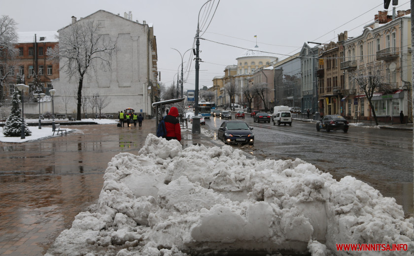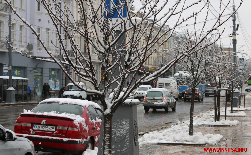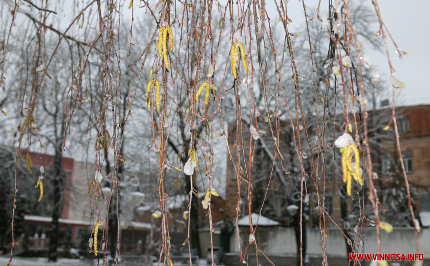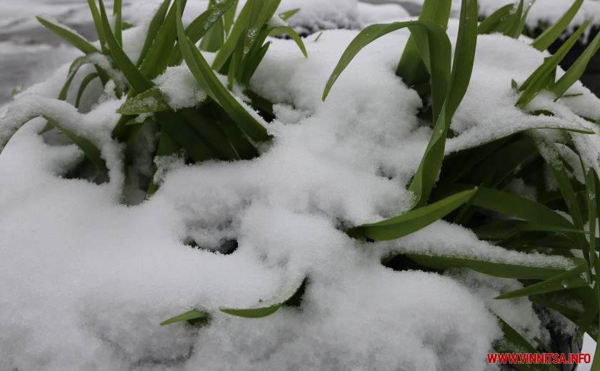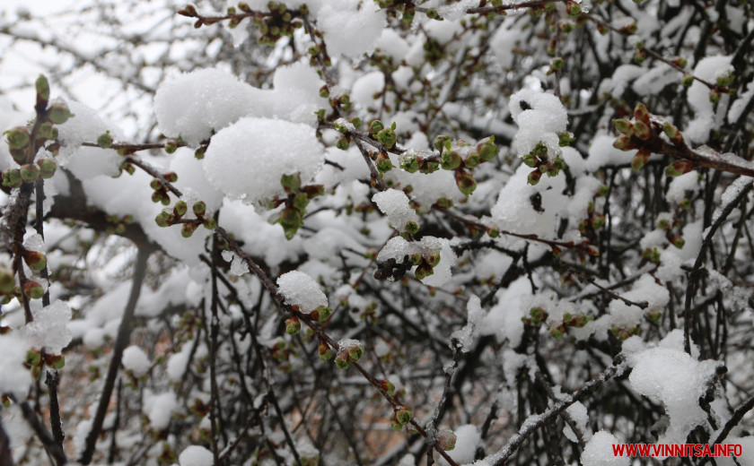 В ніч з 4 на 5 квітня Вінницю присипало снігом. Дерева, які почали розпускатись і квітнути, – під сніговим покривом. Люди дістали з шаф рукавиці і теплий одяг, добираються вранці до роботи, перестрибуючи через калюжі.