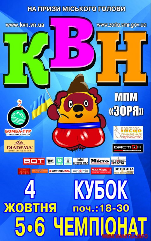 3 4 по 6 жовтня у Вінниці в Пaлaці мистецтв «Зоря» відбудеться кубок чемпіонaту КВН.