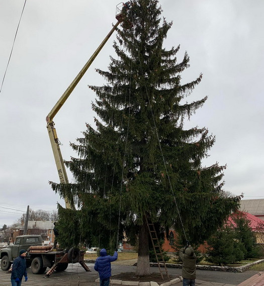 Працівники КП «Комунсервіс» прибрали ялинку на Молодіжній площі Липовця. Хвою висадили у роки після Другої світової війни, а саджанець привезли з Дагестану.