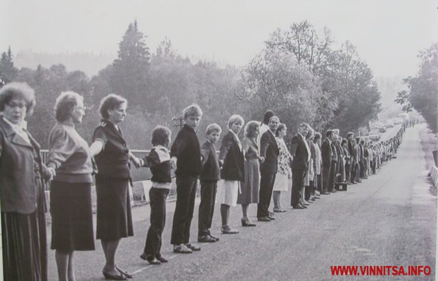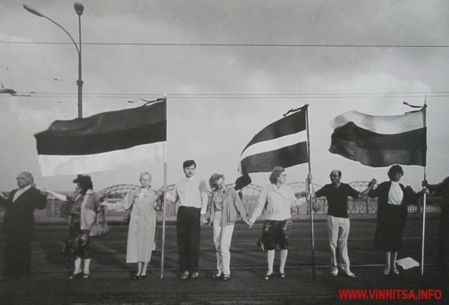 После Крыма фотовыставка прошла в Киеве, Львове, Днепропетровске, а сейчас, наконец, открыта для винничан. Куратором экспозиции является известный латвийский фотограф и медийный менеджер Илмарс Знотиньш. 41 фотоснимок рассказывает о возрождении Латвийской Республики в конце ХХ столетия, об акции «Балтийский путь» и рижских баррикадах. 25 лет назад пал железный занавес. 23 августа 1989 года два миллиона людей, держась за руки, объединились в одну живую цепь длиной 600 километров между Вильнюсом, Ригой и Таллинном. Это был мирный протест против раздела Европы и оккупации Балтийских стран, против преступления, которое состоялось 50 лет назад в 1939 году, когда сталинская СССР и гитлеровская Германия подписали тайный протокол, известный как пакт Молотова-Риббентропа. В этой цепи каждый человек, каждая нация и каждая личность была важна для достижения успеха. Акция стала доказательством того, что даже после полстолетия вранья, истина может воскреснуть и победить.
