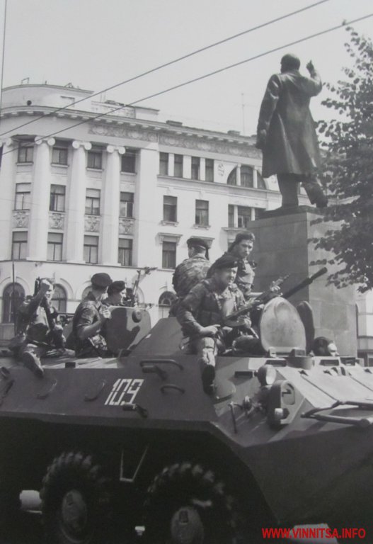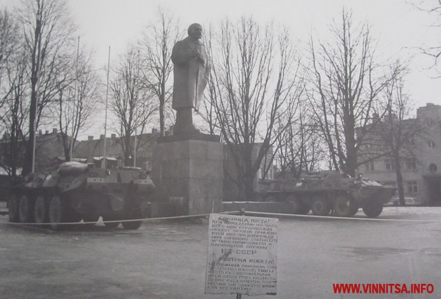 Бронетранспортеры охраняют памятник Ленину осенью 1990 года