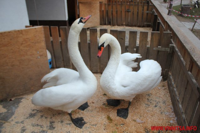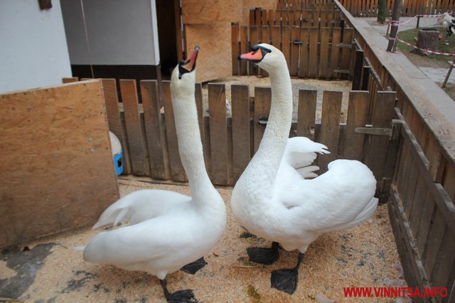 Вінницьких лебедів, які жили на штучному озерці у Центральному парку, на зимівлю перевели у «Зоодворик», що знаходиться неподалік. Для них облаштували вольєр з підігрівом і майданчик для прогулянок.